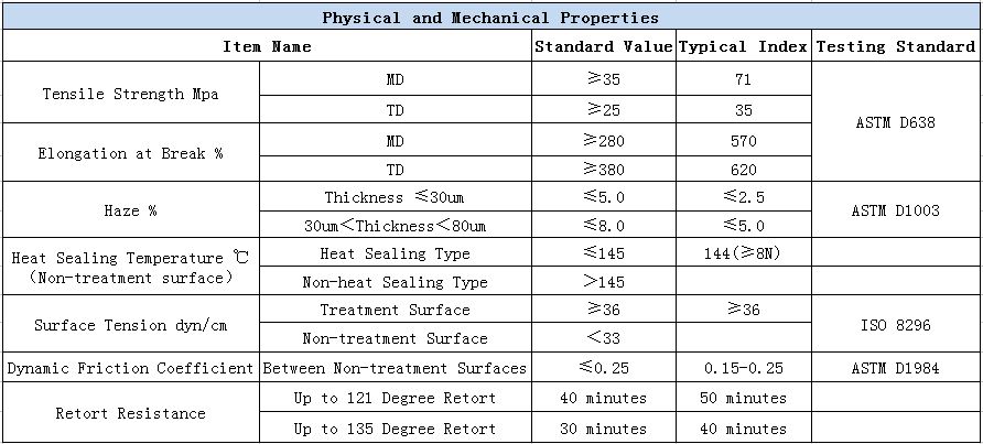 resistance after elevated temperature retort. The CPP retort film is mainly